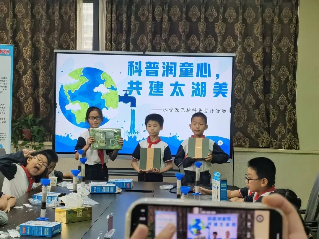 本次科普宣传活动寓教于乐,工作人员通过手工和知识竞赛等形式向同学们科普了节水保水意识,同时在学校公共区域布设了有关水资源保护的易拉宝、分发水资源保护指南手册等,呼吁同学们从小事做起,从身边做起,养成节水保水的好习惯,真正做到科普润童心,共建太湖美。