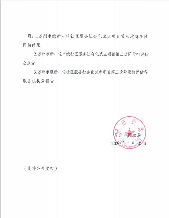 苏州姑苏区乐助社工事务所在第三轮社服评估中名列第一并获评唯一优秀,这是社工社区部员工以及机构其他部门员工共同协同创新与努力结果。